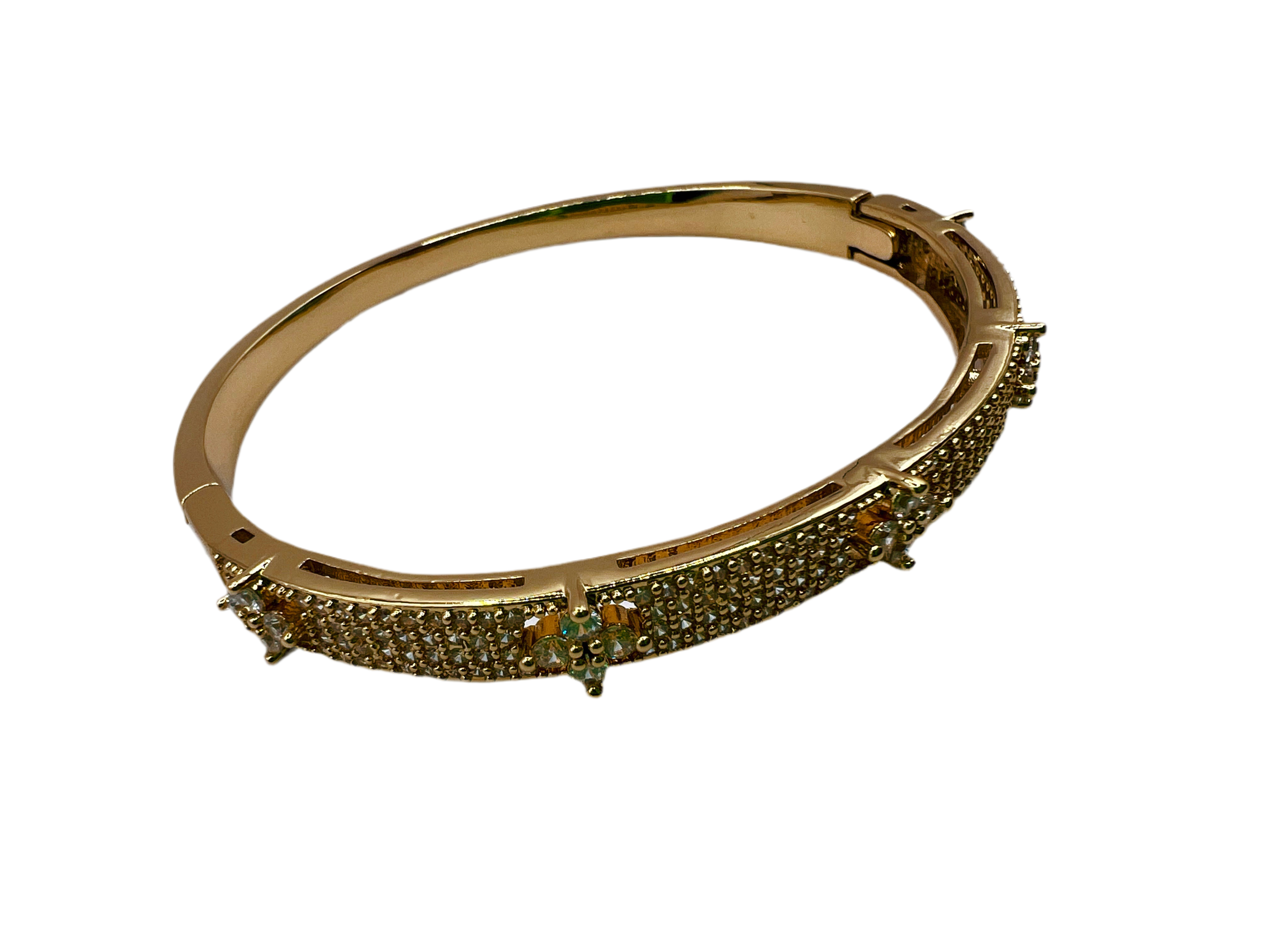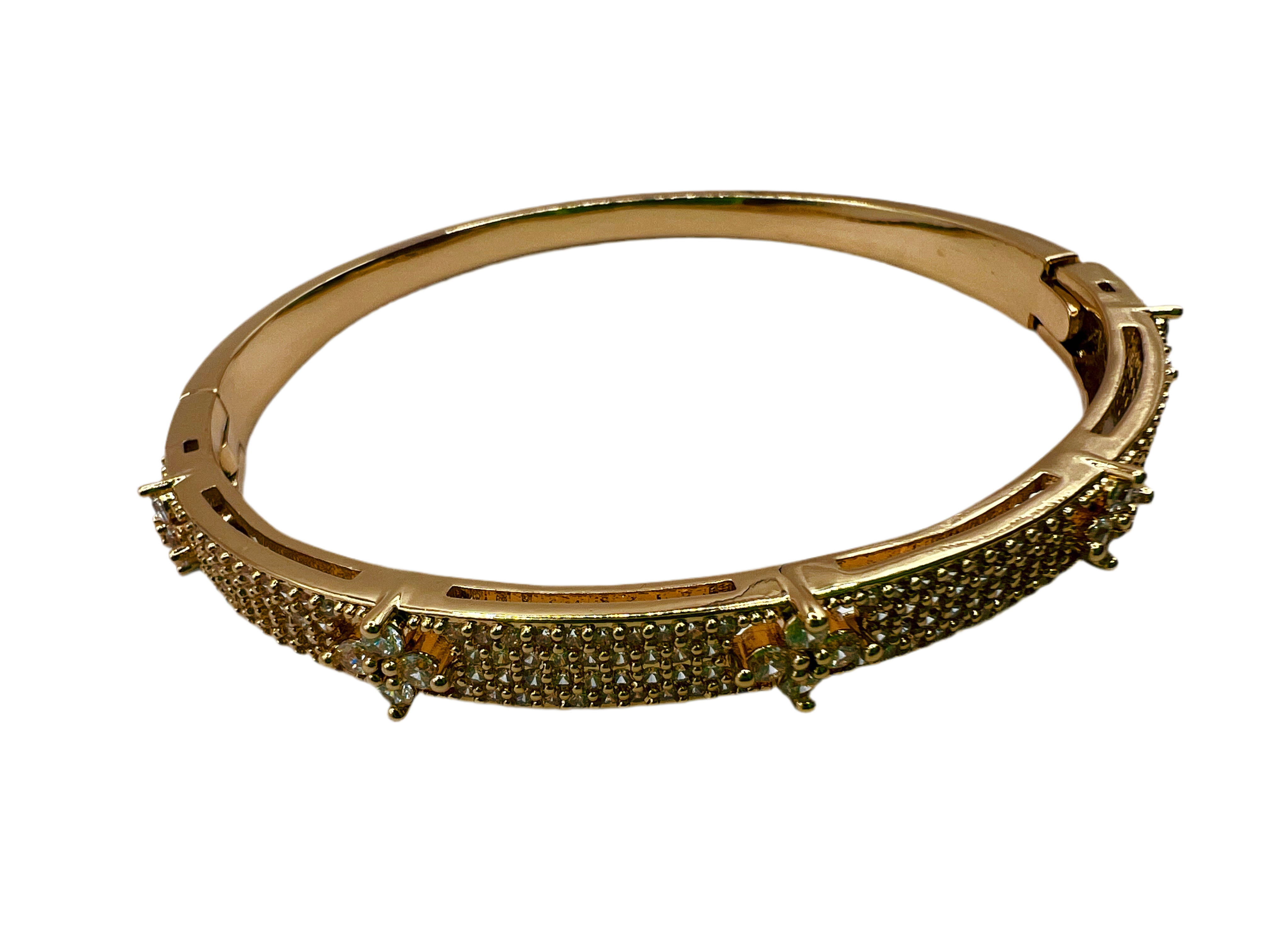 Crafted from stainless steel, this bracelet exudes sophistication. The upper section features delicate small diamonds along with five diamond flowers, creating a stunning visual effect. Perfect for date night, it shines beautifully and stands out as a true statement accessory.