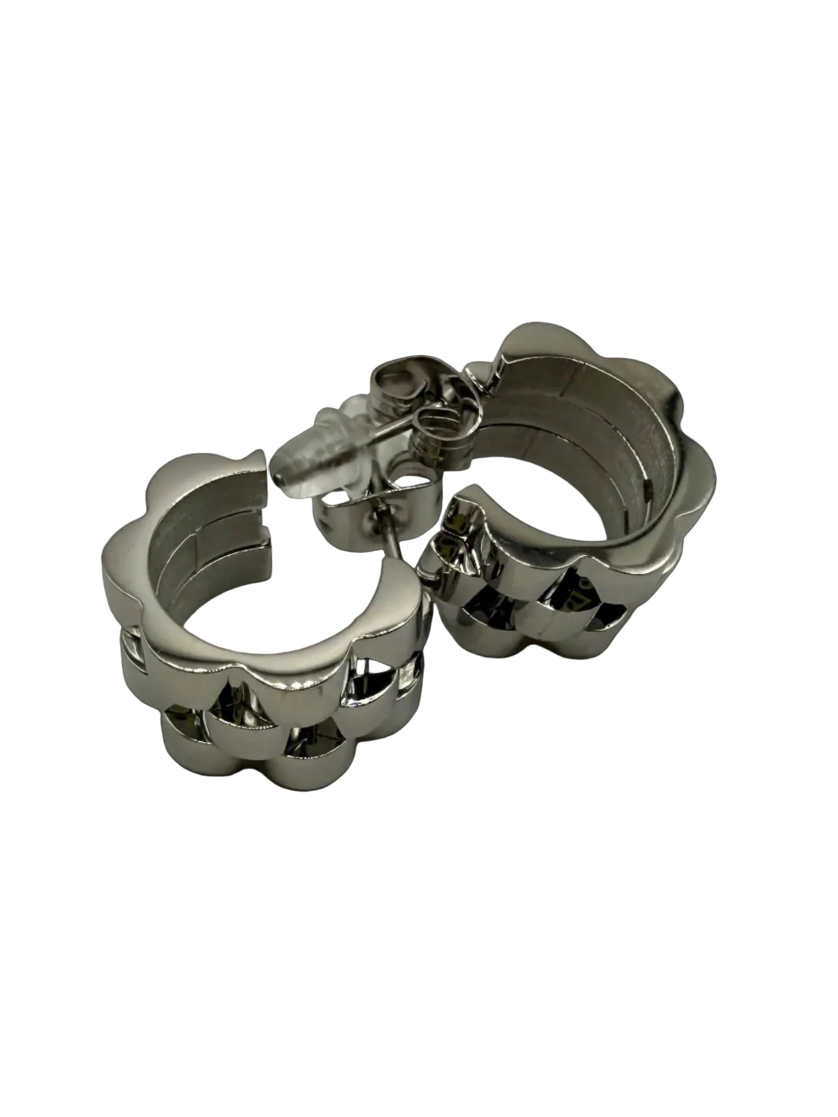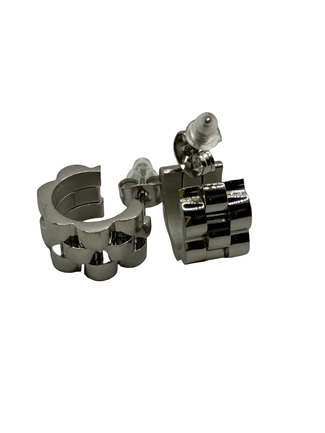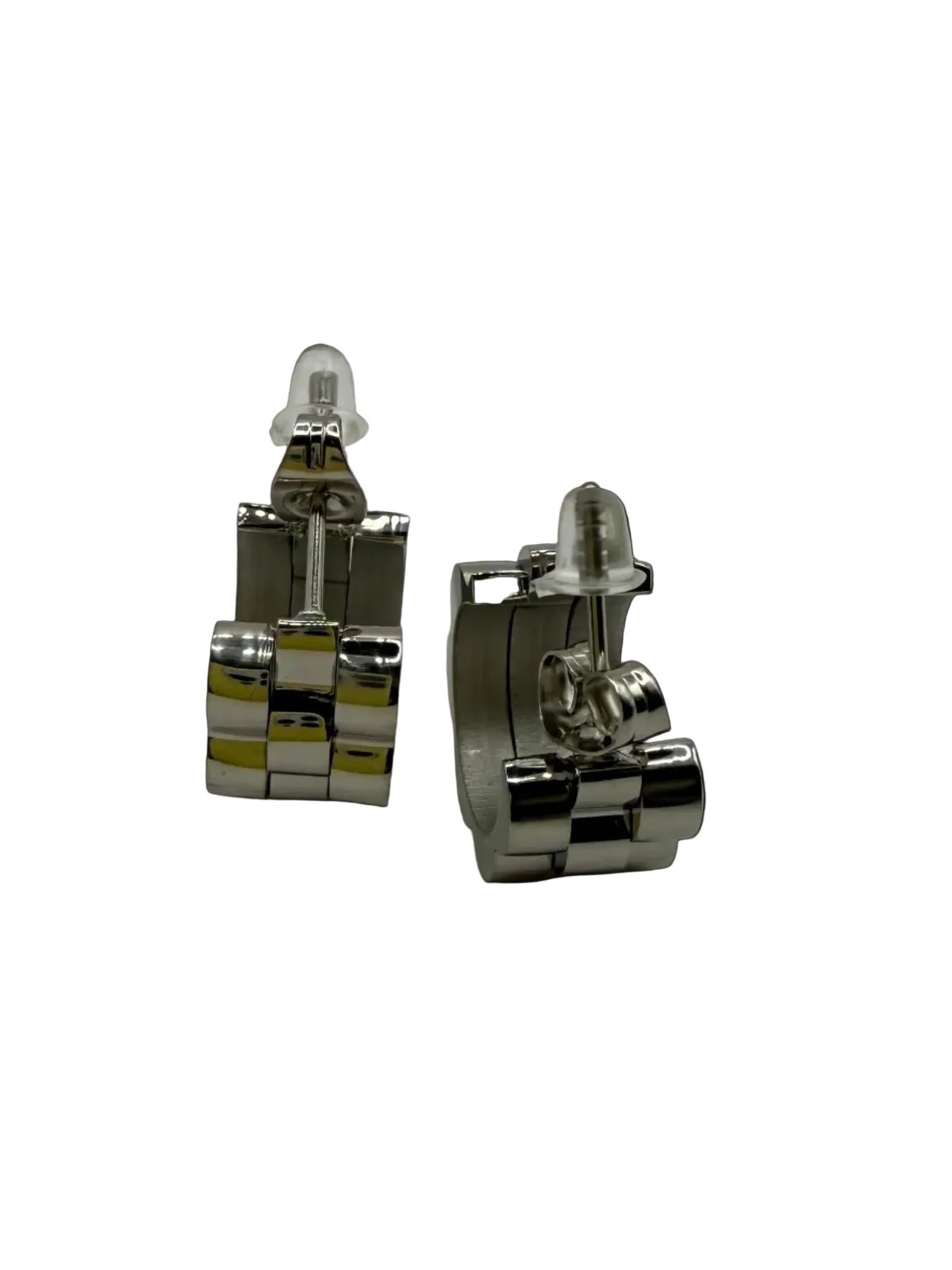 The Rolex Cuff IV mini earrings are crafted from stainless steel, offering versatility suitable for both formal and casual attire.